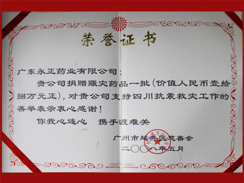 2008年四川抗震救災(zāi)工作榮譽(yù)證書(shū)