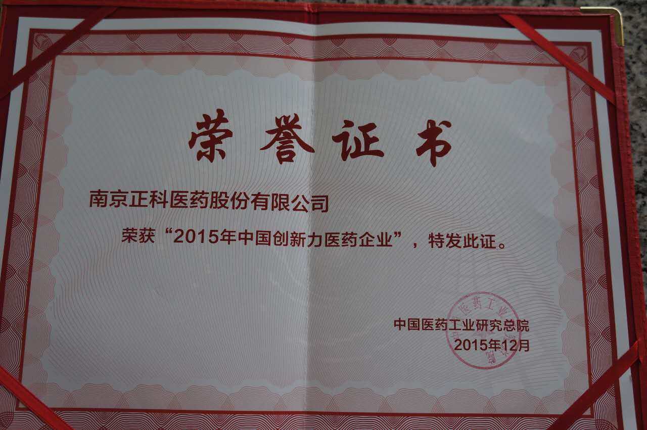 2015創(chuàng)新力醫(yī)藥企業(yè)證書(shū)
